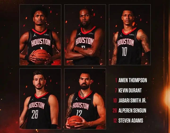 阿门、杜兰特、小史密斯、申京、亚当斯。